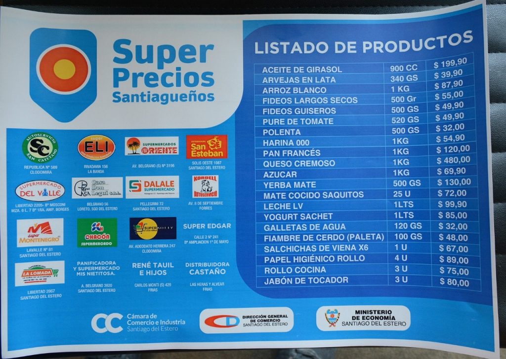 El Gobierno de la Provincia, representado por el ministro de Economía, CPN. Atilio Chara, y la Cámara de Comercio e Industria de Santiago del Estero, por la Ing. Alejandra Rafael, firmaron el acuerdo de precios, denominado “Súper precios santiagueños”, que contiene un listado de productos que se pondrán a la venta en supermercados tanto de Capital como del interior de la Provincia.