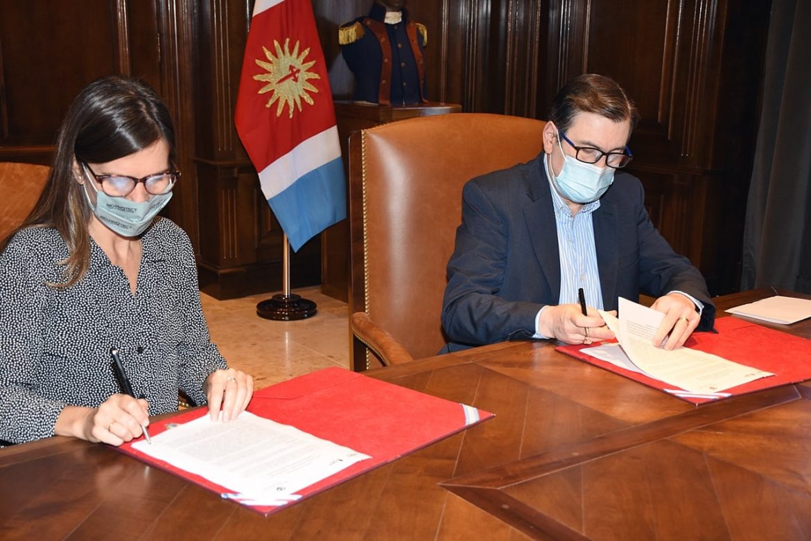 Durante el encuentro, el Gobernador y la directora Ejecutiva, firmaron un convenio de cooperación técnico y jurídico para la implementación del programa «Red Federal de la Seguridad Social para niñas, niños, adolescentes personas gestantes y poblaciones vulnerables».