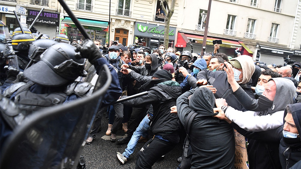 Según la cadena BFMTV, en París la policía disolvió una formación de personas en la avenida Voltaire, tras enfrentamientos en los que un agente tuvo que ser trasladado por las lesiones.
