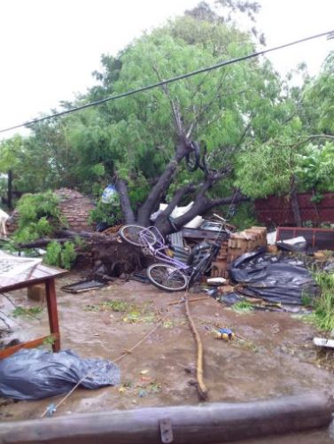 Una fuerte tormenta se abatió en esta tarde en la ciudad de Bandera sorprendiendo a los vecinos con fuertes vientos, lluvia y granizo, provocando importantes daños materiales en varias casas, con voladuras de techos y caída de árboles.