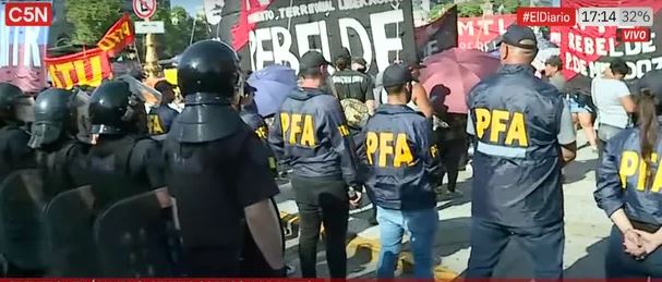 Es por una protesta contra la Ley Ómnibus de grupos de izquierda. Intentaron cortar Entre Ríos y Avenida Rivadavia y las fuerzas de seguridad lo impidieron.
