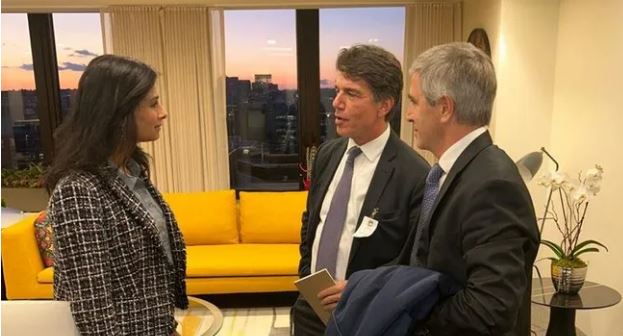 Según testigos del encuentro, Milei le sonrió a Georgieva y la abrazo. Y Gopinath hizo el gesto libertario al lado del presidente, y después los tres se sacaron una selfie.