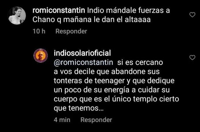 Concretamente, la usuaria le pidió al Indio que le mandara «fuerzas» de cara al alta. El mensaje fue el miércoles, ante lo que Solari no tardó en responder.