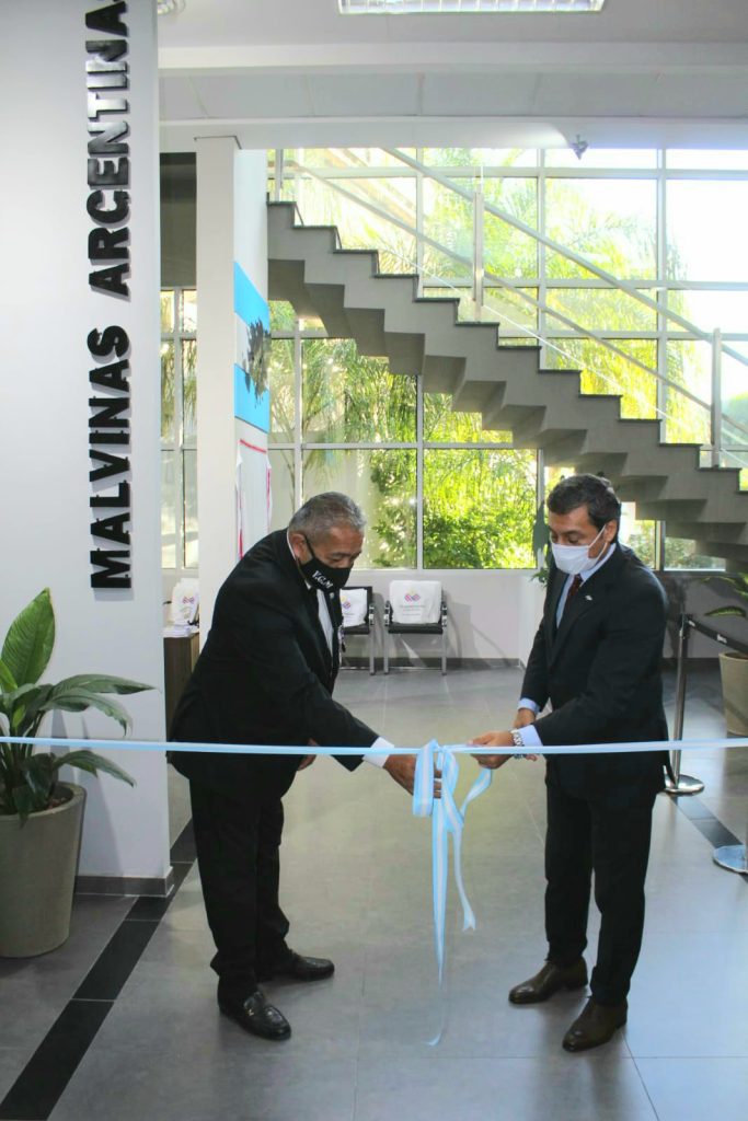 En la apertura del acto, el vicegobernador Silva Neder y el presidente del Centro de Ex Soldados Combatientes en el Atlántico Sur y miembro de la Comisión Nacional de Ex Combatientes de Malvinas en el Ministerio del Interior, David Díaz, realizaron el corte de cintas y dejaron inaugurado este espacio permanente en homenaje a los héroes de Malvinas.