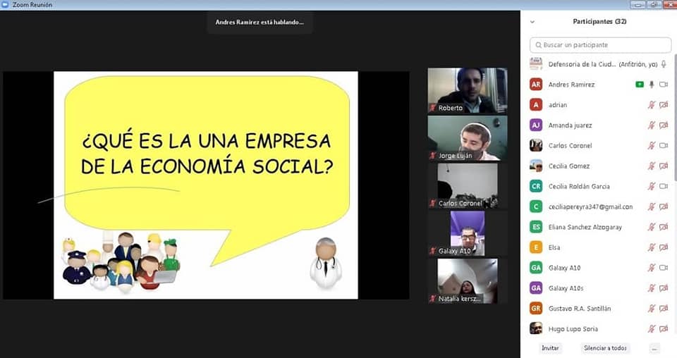 El miércoles pasado finalizó con marcado éxito, el primer encuentro virtual sobre Emprendedurismo, Economía Social y Cooperativismo dictado por el Dr Carlos Gonzales y el Lic Andrés Ramirez, para miembros de Centros Vecinales, Asociaciones Civiles y Ongs. organizado por la Defensoría del Pueblo de ciudad Capital.