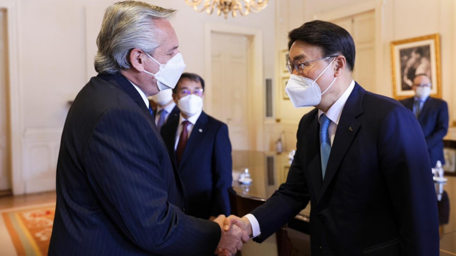 Fernández estuvo acompañado en el encuentro por el ministro de Desarrollo Productivo, Matías Kulfas; por la secretaria de Minería, Fernanda Ávila; por el embajador argentino en Corea del Sur, Alfredo Bascou; y por el senador nacional Guillermo Andrada.