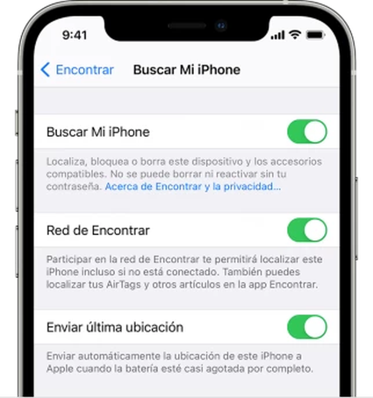 Apple tiene una aplicación para encontrar equipos extraviados llamada «Encontrar mi iPhone». Para activar el servicio hay que ingresar a Configuración > Cuenta (nombre del usuario) > iCloud y ahí seleccionar la opción de «Encontrar mi iPhone».