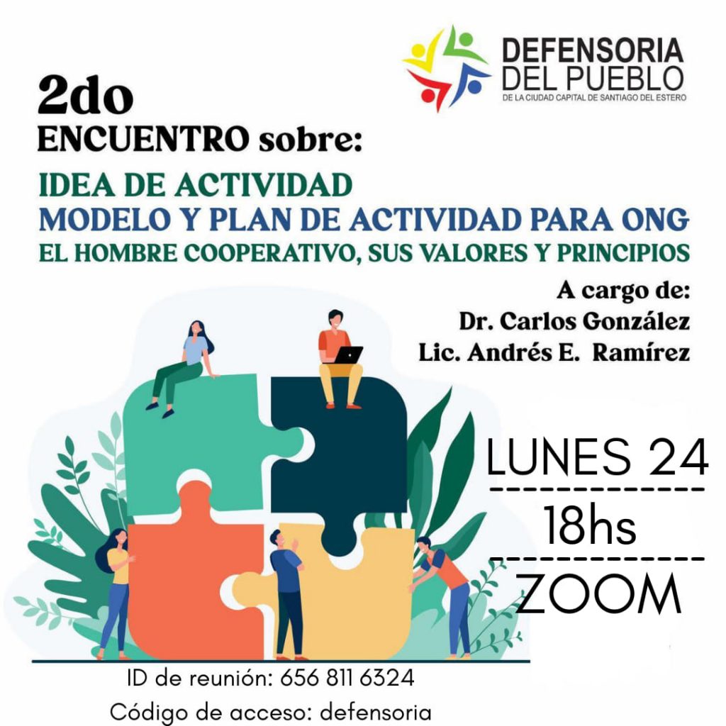 La Defensoría del Pueblo de la ciudad Capital organizó para el próximo día lunes 24 del corriente mes a partir de las 18:00 hs, el Segundo Encuentro sobre Emprendedurismo, Economía Social y Cooperativismo, el cual se realizará de manera virtual a través de la plataforma zoom.