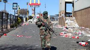 Desde hace varios días, en la provincia de KwaZulu-Natal y de Guateng, donde se encuentran dos de las principales ciudades del país, Johannesburgo y Pretoria, persisten las protestas fogoneadas además por la crisis económica de un país agotado por la pandemia de coronavirus y que alcanzó una tasa de desempleo récord (32,6%).