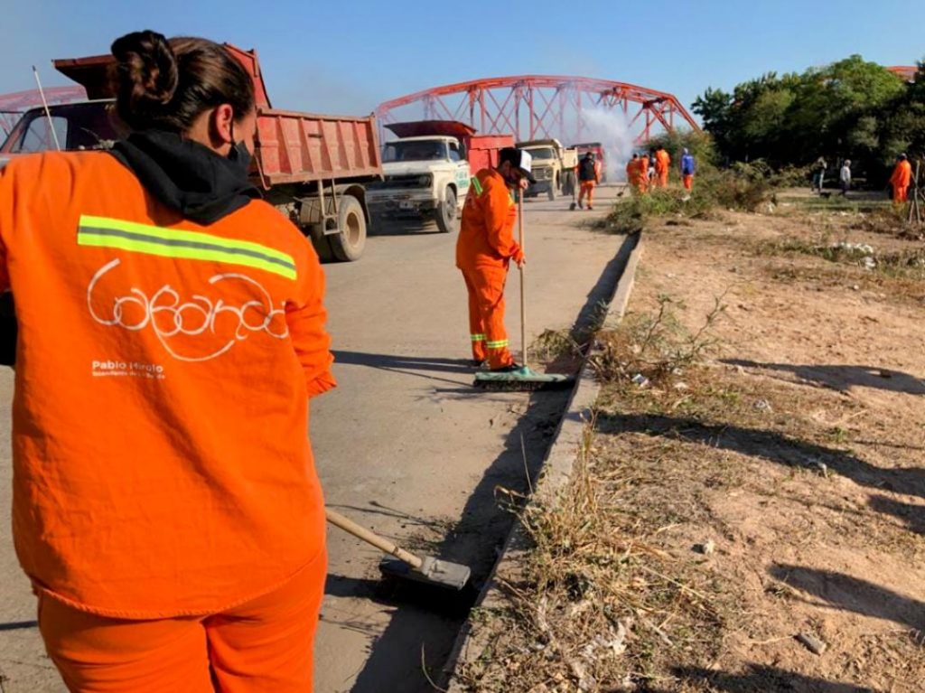 Personal de los obradores Dorrego, San Carlos, Misqui Mayu y San Fernando se abocaron a las tareas de barrido en la zona donde las palas cargadoras y camiones recolectores retiraron la basura acumulada.