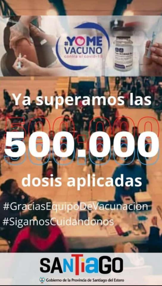 El gobernador de la provincia Dr. Gerardo Zamora, en su cuenta de la red social facebook, hizo público el resultado del Monitor de Vacunación del Ministerio de Salud de la Nación en el cual nuestra provincia figura con 502.494 dosis aplicadas contra el covid-19