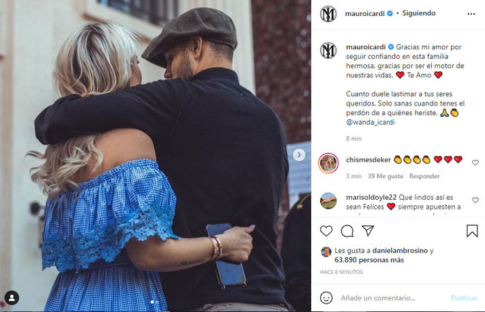 Lo hizo a través de un posteo en la red social Instagram donde declaró: «Gracias mi amor por seguir confiando en esta familia hermosa, gracias por ser el motor de nuestras vidas. Te Amo. Cuanto duele lastimar a tus seres queridos. Solo sanas cuando tenes el perdón de a quiénes heriste».