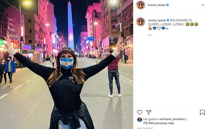 Y luego le dejó un palito al presidente de Brasil, Jair Bolsonaro, con su clásica frase: «BOLSONARO SI QUERES LLORAR, LLORÁ!!!».