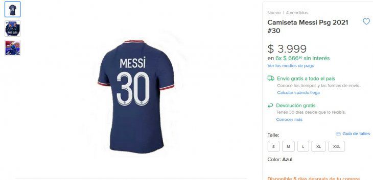 A través de Mercado Libre se puede conseguir la «30» de Messi por $3999. Recordemos que en el equipo francés Neymar usa la 10, por eso el argentino se inclinó por el número del inicio de su carrera en Barcelona.