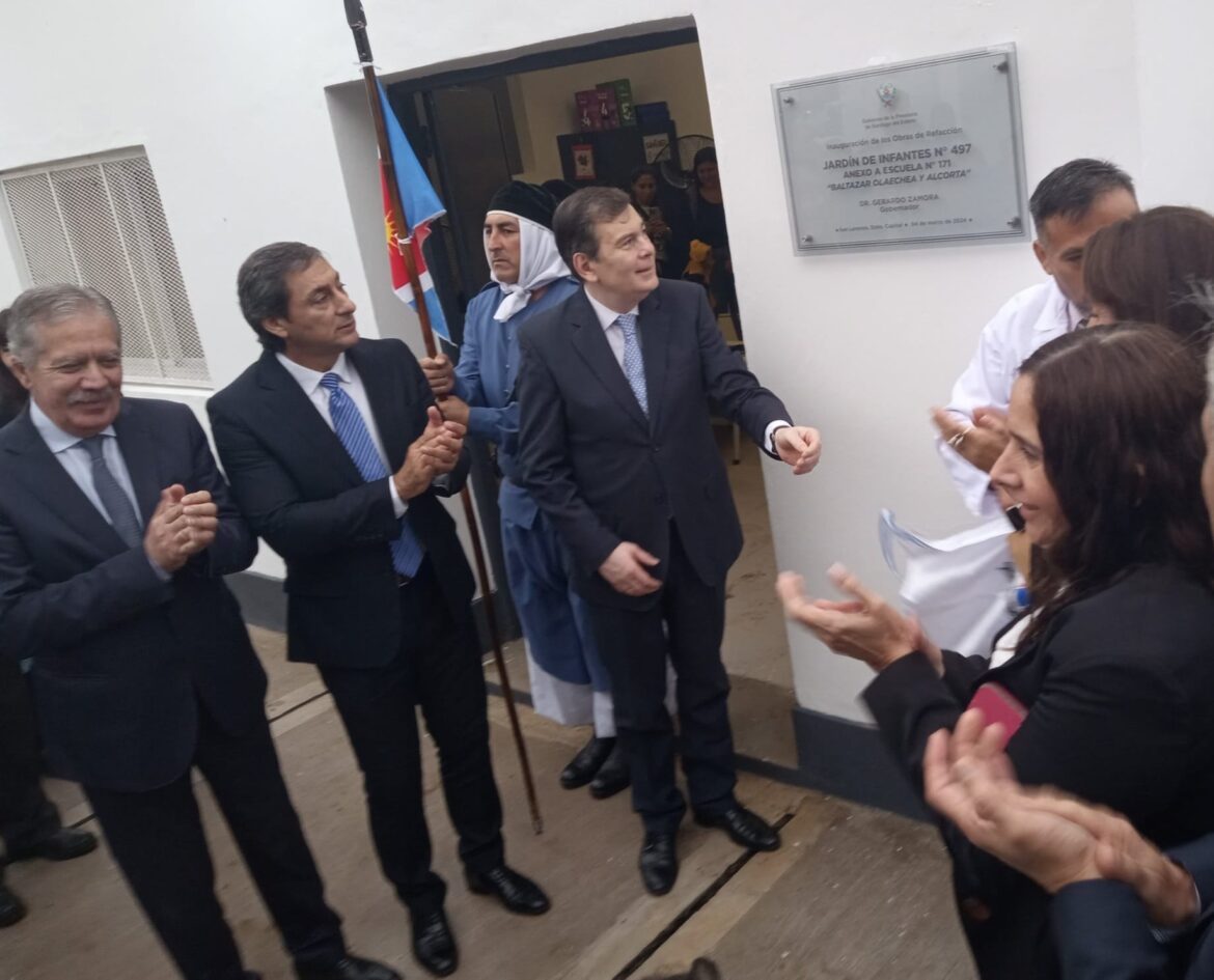 El gobernador Gerardo Zamora presidió este lunes por la mañana el acto central de apertura del Ciclo Lectivo 2024 para toda la provincia desde la localidad de San Lorenzo, ubicada en la zona oeste del departamento Capital, donde además dejó inaugurada la ampliación y refacción de los edificios de la Escuela N° 171 “Baltazar Olaechea y Alcorta” y del Jardín de Infantes Anexo N° 497.