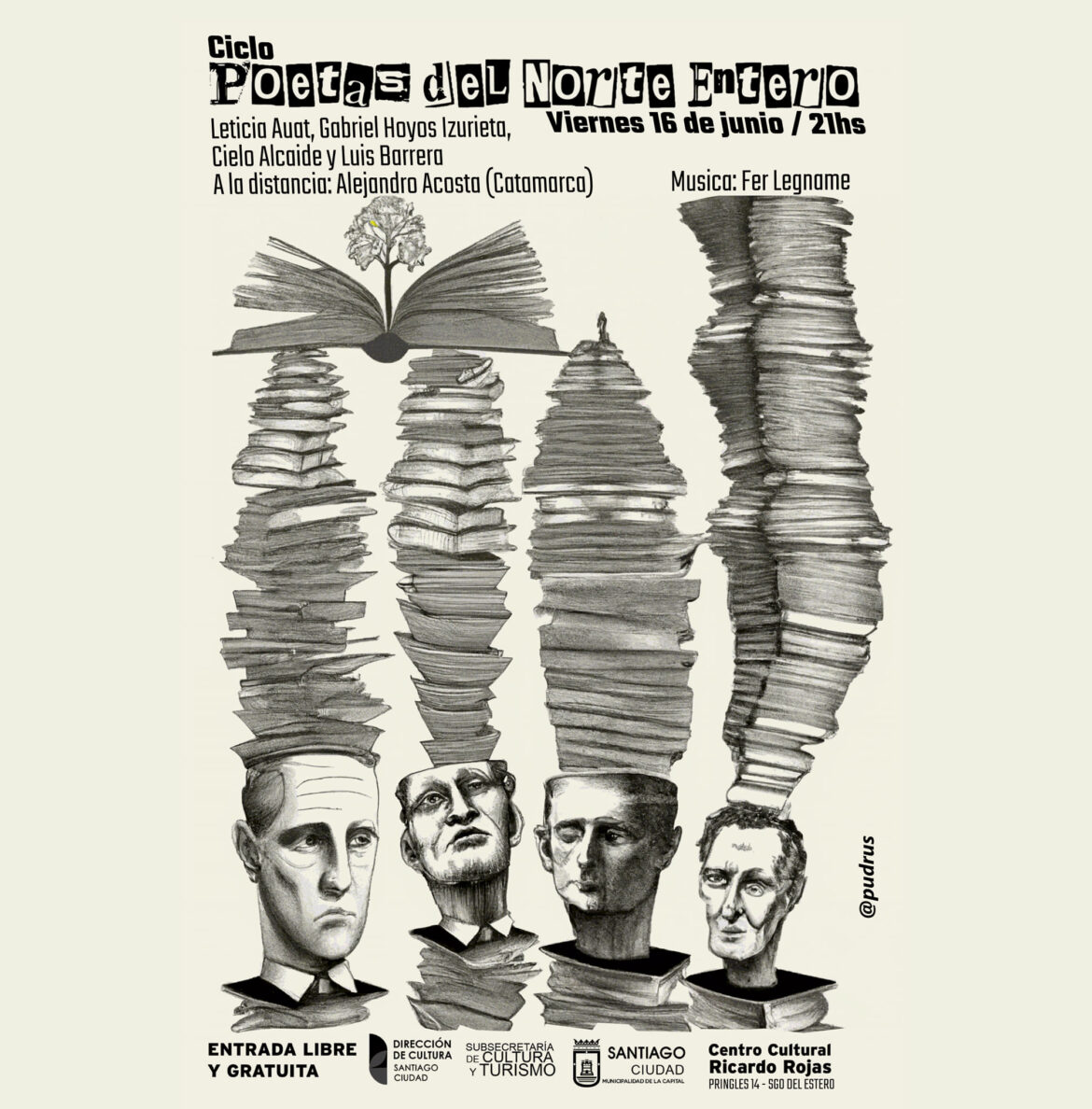 La Dirección de Cultura de la Municipalidad de la Capital realizará este viernes 16 de junio, un nuevo encuentro del ciclo de poesía, ilustración y música, denominado Poetas del Norte Entero. El evento, con entrada libre y gratuita, se llevará a cabo a partir de las 21 horas, en las instalaciones del Centro Cultural Ricardo Rojas, de Libertad y Pringles.