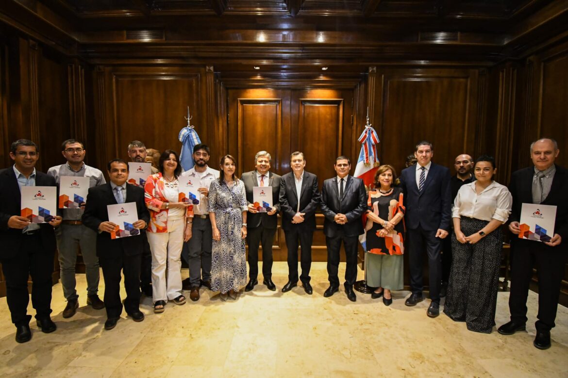Estuvieron presentes el subsecretario de Hacienda, Luis Fiad; la directora general de Comercio de la provincia, Luciana Montinho; la gerente de la Cámara de Comercio e Industria, Carolina Ferreyra y representantes de papelerías y librerías que adhieren al convenio.