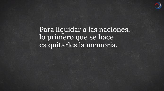 El video inicia con una cita del escritor Milán Kundera, de su obra El libro de la risa y el olvido, en la que sostiene que “para liquidar a las naciones lo primero que se hace es quitarles la memoria”. La voz en off que lee el textual es la del «Tata» Yofre, quien amplía: “Se destruyen sus libros, su cultura, su historia y luego viene alguien y les escribe otros libros, les da otra cultura y les inventa otra historia. Entonces la nación comienza lentamente a olvidar lo que es y lo que ha sido. Y el mundo circundante lo olvida aún mucho antes”.
