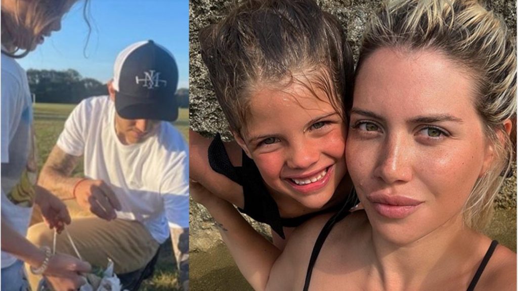 Junto a la secuencia de fotos que la dueña de Wanda Cosmetics compartió a través de sus stories de Instagram se puede ver a la nena junto a Mauro Icardi, su papá, juntando en una bolsa los desechos que la gente tira en el pasto.